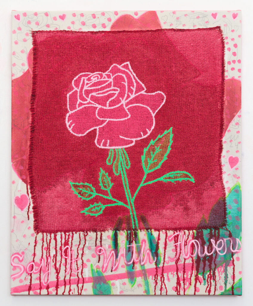 Say It With Flowers. Oil on burlap over canvas; 27 x 32 inches; 2024.