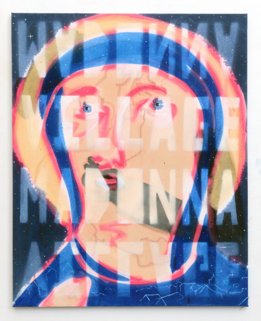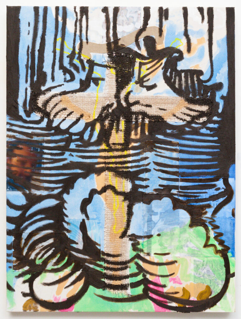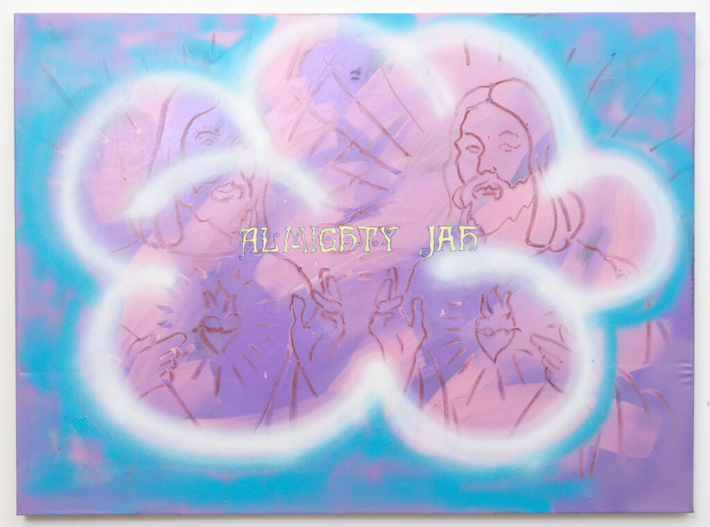 Almighty Jah. Oil paint, oil stick, and spray paint on canvas; 36 x 48 inches; 2024.
