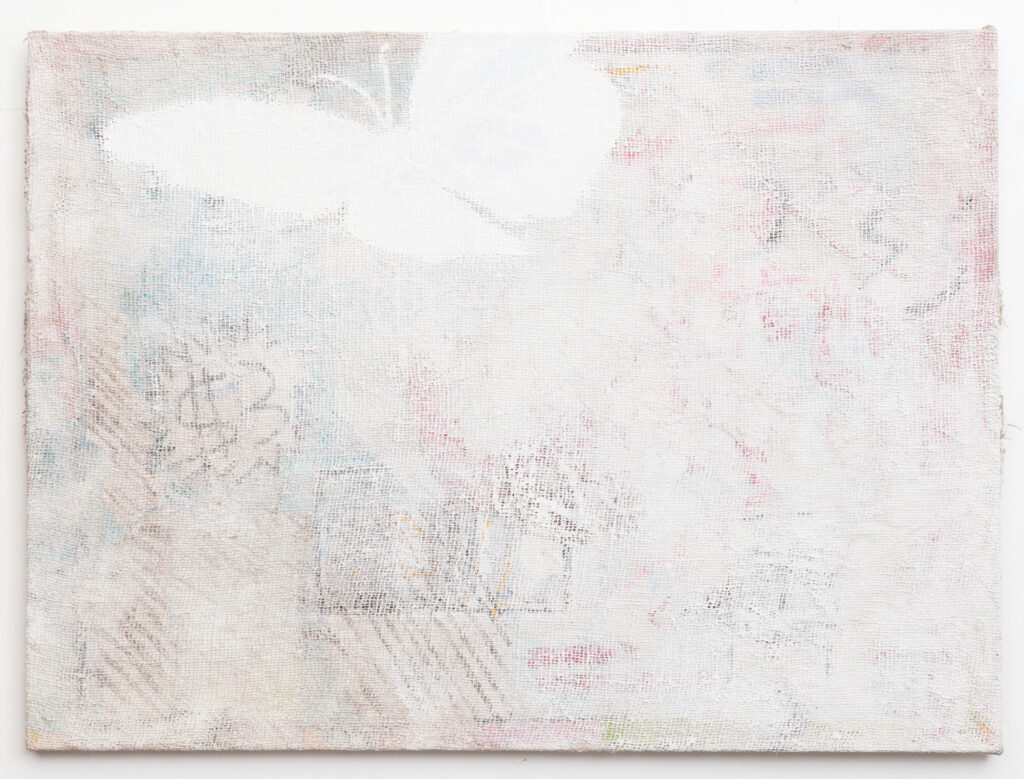Butterfly (the metamorphosis). Acrylic and burlap over abandoned painting;